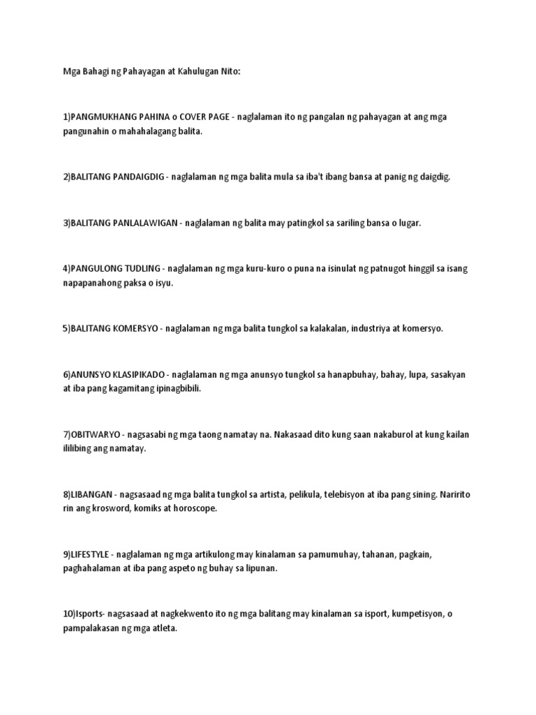 Mga Bahagi Ng Pahayagan At Kahulugan Nito Pdf Journalism News
