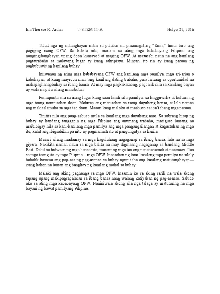 Sanaysay Sa Mga Ofw Sa Filipino Pdf