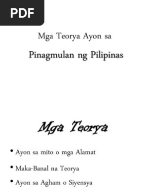 Ilarawan ang pinagmulan ng tao sa pilipinas ayon sa mitolohiya. Sinasabi ng teoryang ito na ang Pilipinas ay sumulpot dahil sa malakas na puwersa at pag-galaw na naganap sa kailaliman ng dagat. Ang paggawa ng kagamitang metal ay laganap noong panahon ng A. Walang dagat na namamagitan sa Asya at sa Pilipinas.