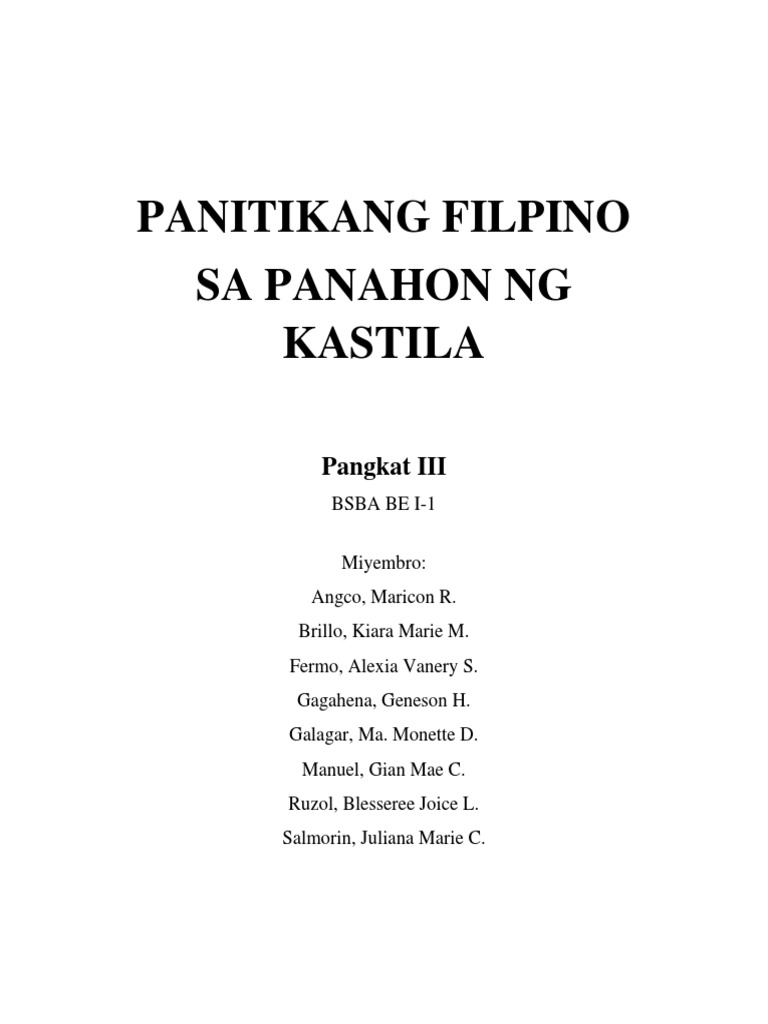 Group 3 Panitikang Filipino Sa Panahon Ng Kastila 1 Pdf