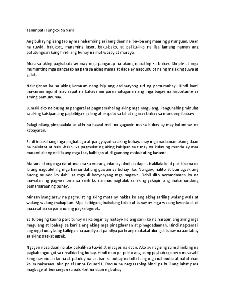 Talumpati Tungkol Sa Sarili Ni Lance Pdf